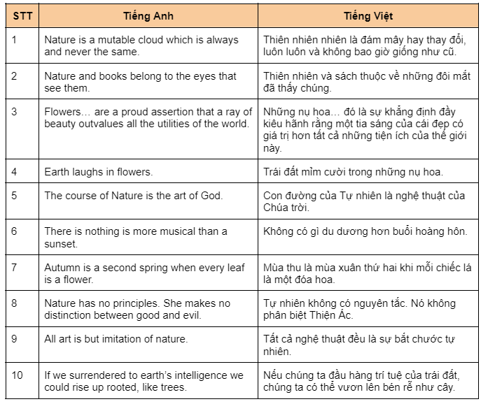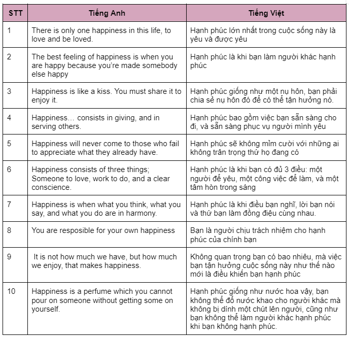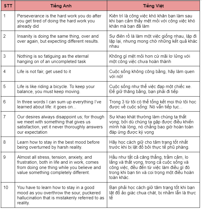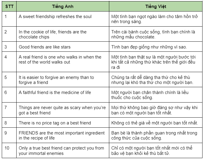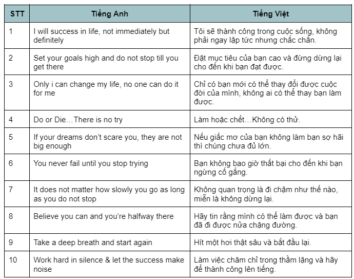 Trên đây là tổng hợp Top 10 các câu Status trên Facebook trong rất nhiều trường hợp. Hy vọng trong hàng ngàn gợi ý được bật mí ở bài viết, bạn sẽ tìm được cho mình câu status bằng tiếng Anh mà mình yêu thích!