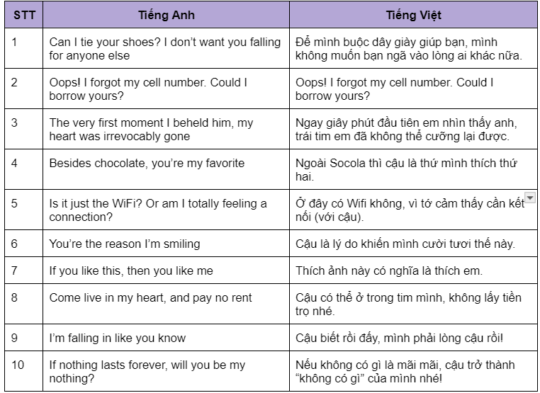 16. Top 10 status thả thính hay bằng tiếng Anh