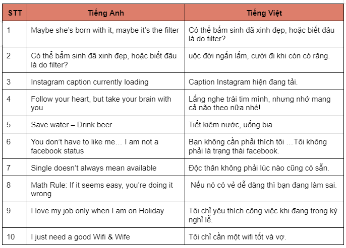 1. Top 10 status bằng tiếng Anh ngắn gọn, đơn giản