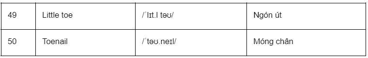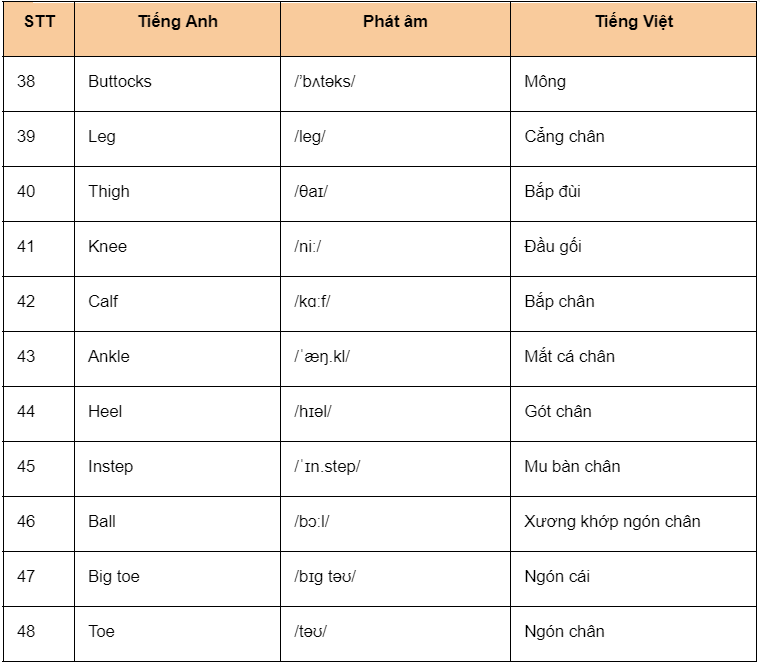 3. Các từ chỉ bộ phận cơ thể người: Phần thân dưới