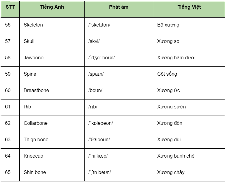 5. Từ vựng chỉ bộ phận cơ thể: Xương khớp
