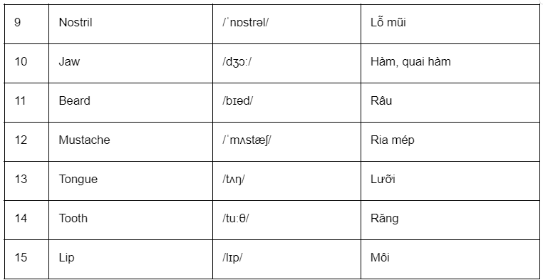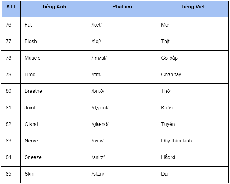 7. Từ vựng tiếng Anh về cơ thể người liên quan khác