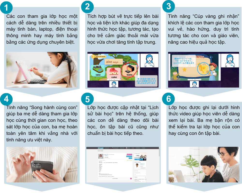 *** Các lớp học cũng có thể được thực hiện qua Zoom, Skype, tuy nhiên chúng tôi khuyên dùng Classroom để tận dụng những tính năng hiện đại nhất cho lớp học của các con bạn.