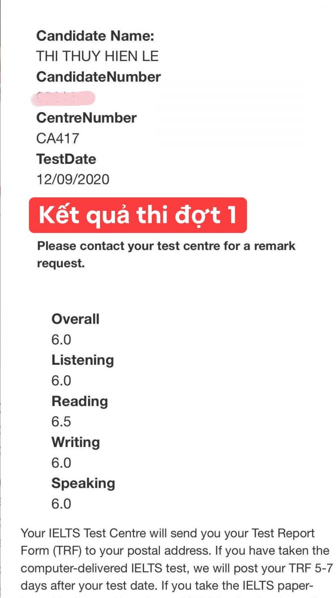 Kết quả thi IELTS của mình: