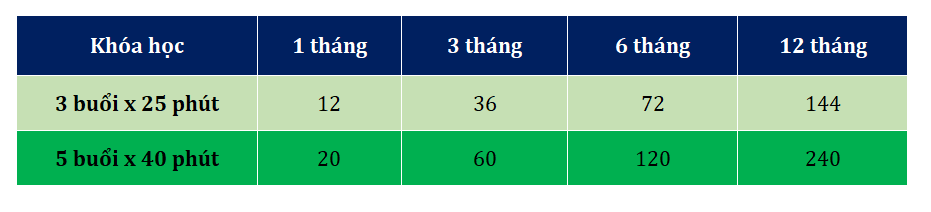 Lịch học và giáo viên linh hoạt tùy chọn, tham khảo bên dưới: