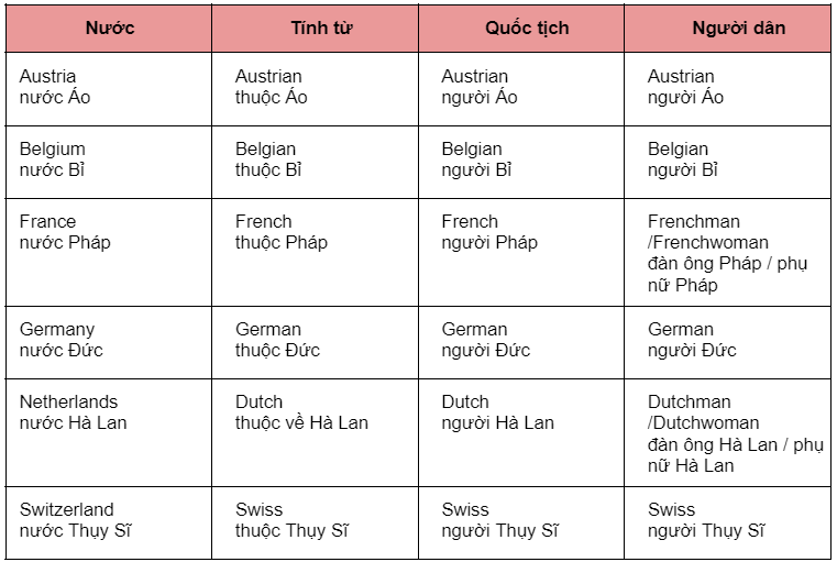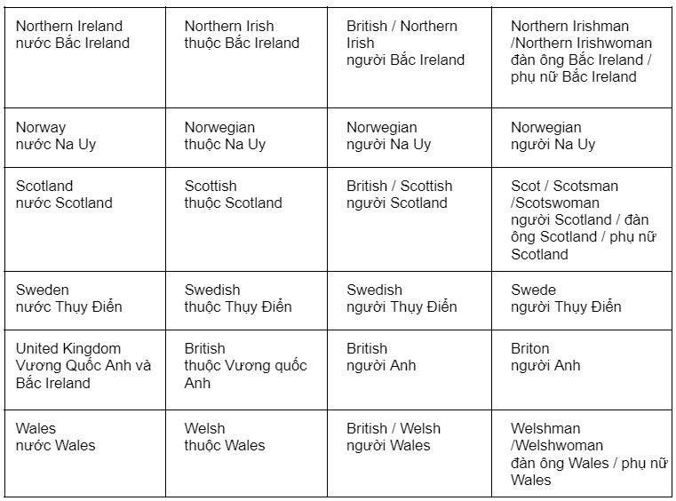 1. Tên các quốc gia bằng tiếng Anh khi vực Châu Âu