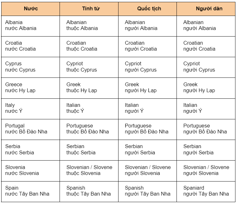 Tên các quốc gia bằng tiếng Anh khu vực Nam Âu