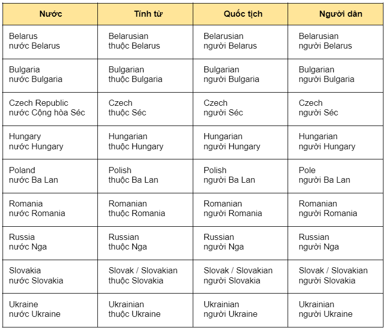 Tên các quốc gia bằng tiếng Anh khu vực Đông Âu