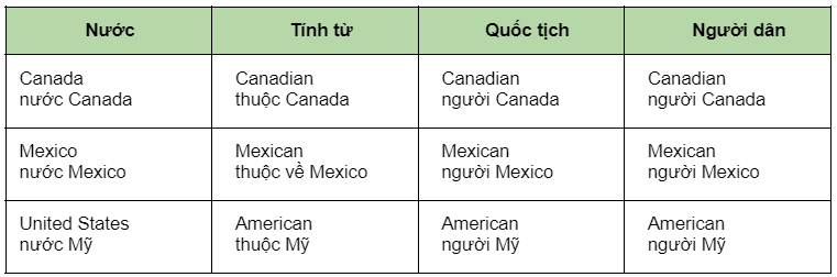 Tên các quốc gia bằng tiếng Anh khu vực Bắc Mỹ