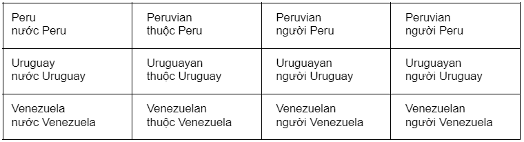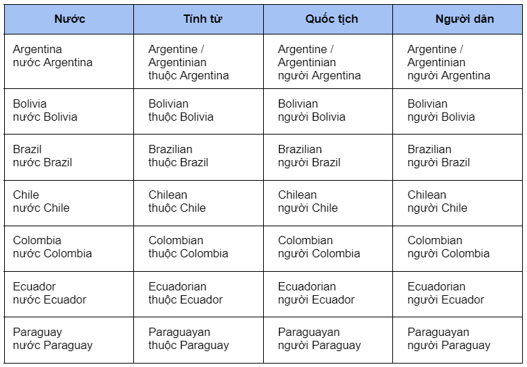 Tên các quốc gia bằng tiếng Anh khu vực Nam Mỹ