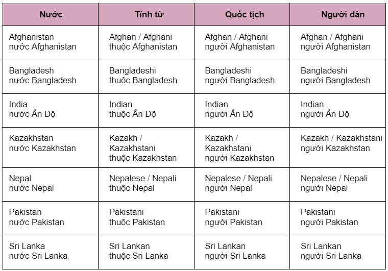 3. Các quốc gia bằng tiếng Anh khu vực Châu Á