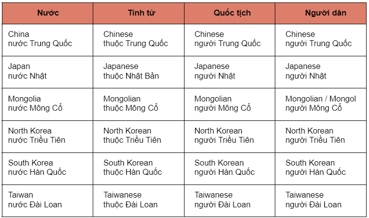 Tên các quốc gia bằng tiếng Anh khu vực Đông Á