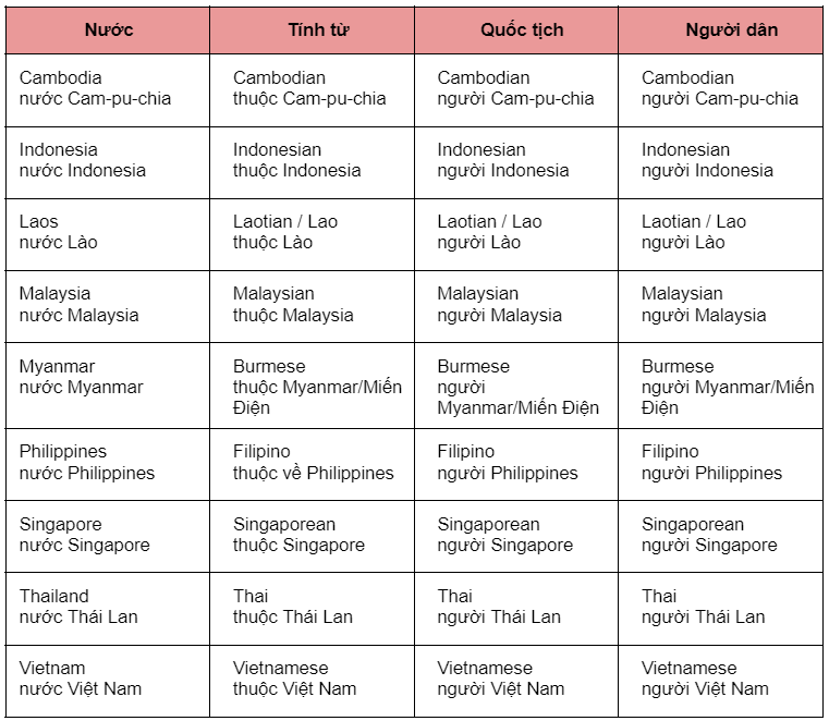 Tên các quốc gia bằng tiếng Anh khu vực Đông Nam Á