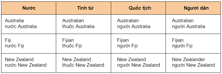 4. Tên các quốc gia bằng tiếng Anh khu vực Châu Úc và Thái Bình Dương