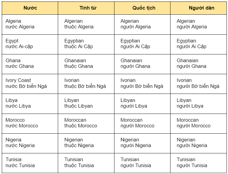 5. Tên các quốc gia bằng tiếng Anh khu vực Châu Phi